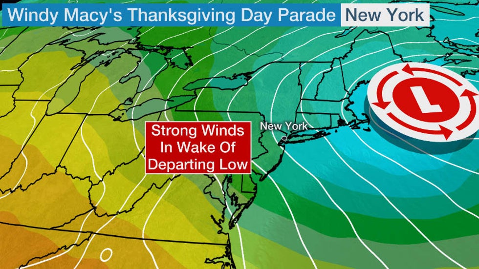A strong low-pressure system exiting northern New England and Atlantic Canada into the North Atlantic Ocean will be the culprit for the gusty winds on Thursday.