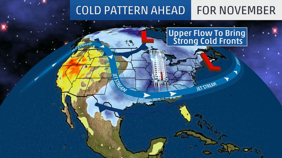 Cold temperatures have swept eastward behind a cold front to start the month, and the upper-level weather pattern will be favorable for additional blasts of cold air to infiltrate the U.S. into mid-November.