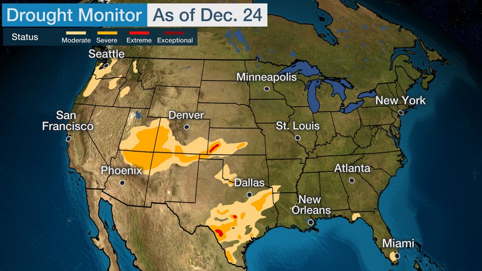 While most of the drought area was erased by Christmas, some impressive precipitation deficits also were seen along the northern Gulf Coast.