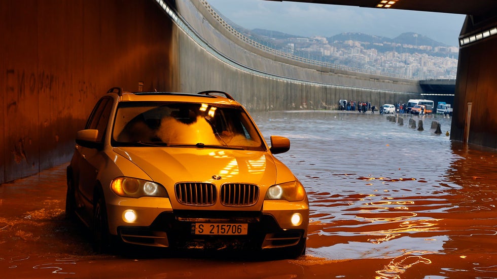 Motorists were stranded in the southern suburb of Ouzai after vehicles became submerged in the floodwaters. When pumps used to clear water from a tunnel under Rafik Hariri International Airport stopped working, authorities closed the tunnel for hours.
