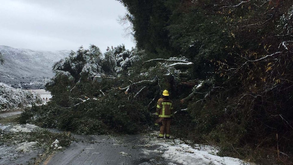 Crews in Southern California worked to clear major roads Friday morning after a winter storm pummeled the state with snow and ice for the second straight night.