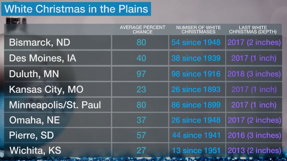 In 2018, only a trace of snow was observed on Christmas morning in Minneapolis and Bismarck, North Dakota, meaning it was not an official white Christmas. Duluth reported 3 inches on the ground last year.