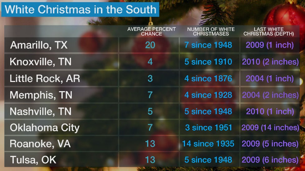 It has been at least nine years since a white Christmas was observed in most of the South, although Tulsa, Oklahoma observed a trace of snow in 2017.