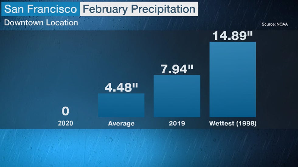 A number of locations in Northern California didn't see a drop of rain this February, including San Francisco and Redding.