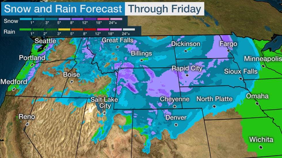 The higher elevations of the northern Rockies are expected to pick up the most snowfall, with perhaps a foot or more in parts of the chimney of Idaho, western Montana and western Wyoming.