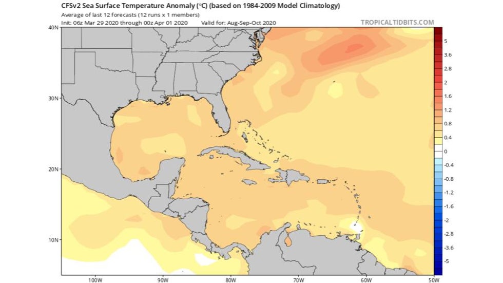 Climate models suggest that most of, if not the entire, basin will be warmer than average in the peak of the hurricane season.