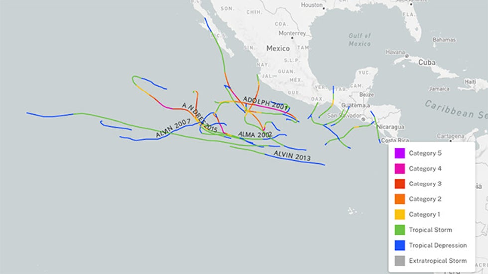 The earliest Eastern Pacific tropical depression or storm occurred just three years ago, when Tropical Storm Adrian formed off the coast of El Salvador and Guatemala on May 9, 2017.