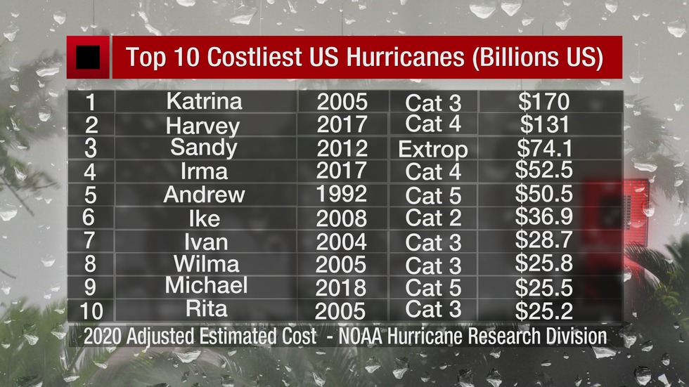 In fact, according to NOAA's Hurricane Research Division, Allison comes in at No. 17 on this list as a tropical storm with Sandy included in the rankings. Allison caused $12.6 billion in damage.