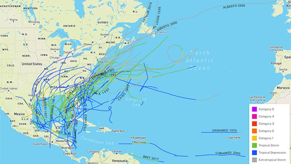 Since 1950, only 6% of all storms have formed in June, or an average of one storm every one to two years.