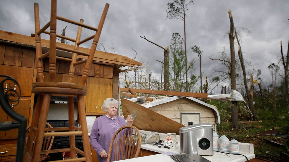 Emma Pritchett, 78, holds up a broken glass from her kitchen sink the day after a tornado hit on Monday, April 13, 2020, in Chatsworth, Georgia.After a hyperactive start to the typical peak of severe weather, including the deadly Easter tornado outbreak in April, the busiest month for tornadoes has been unusually quiet.