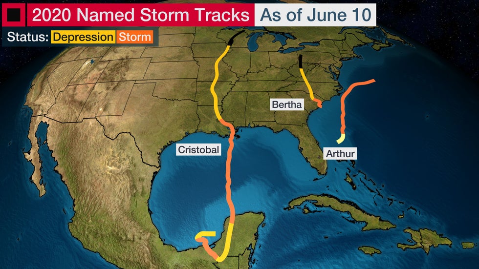 Arthur and Bertha were the first two named Atlantic storms of 2020, and they both formed in May.