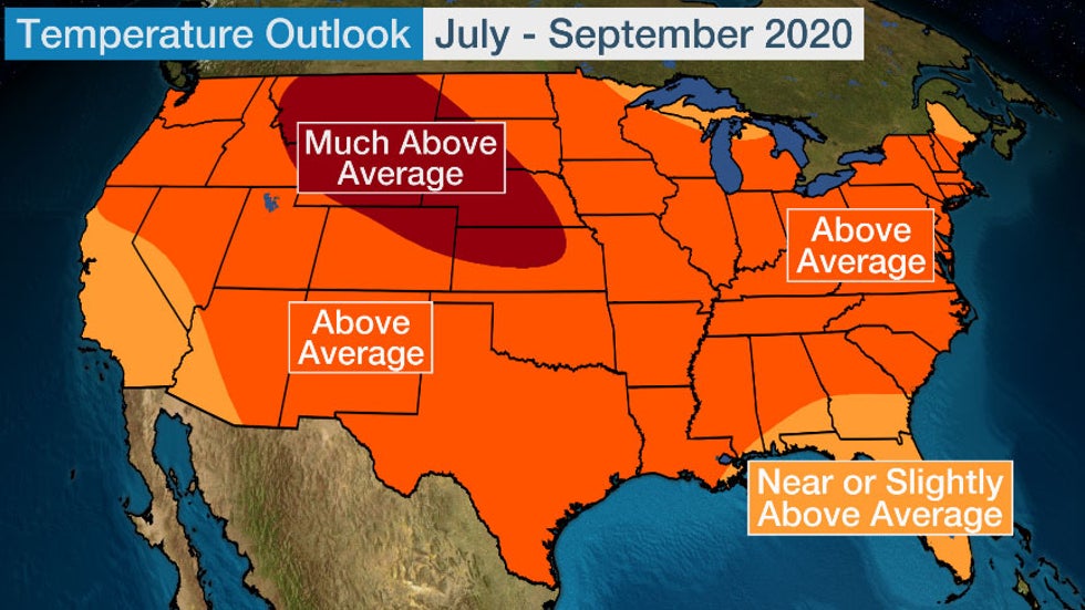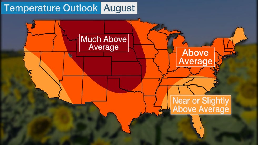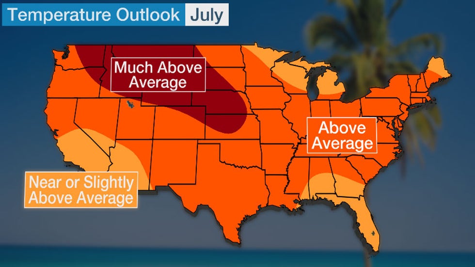 Above-average temperatures are expected from the Northwest into the Plains and much of the East in July.
