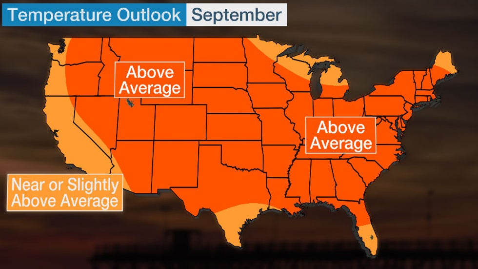 A warmer than average start to fall is anticipated for most of the Lower 48.