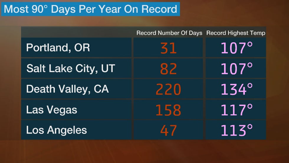 Below, we take a closer look at the records for the most 90-degree days in several cities across the U.S.
