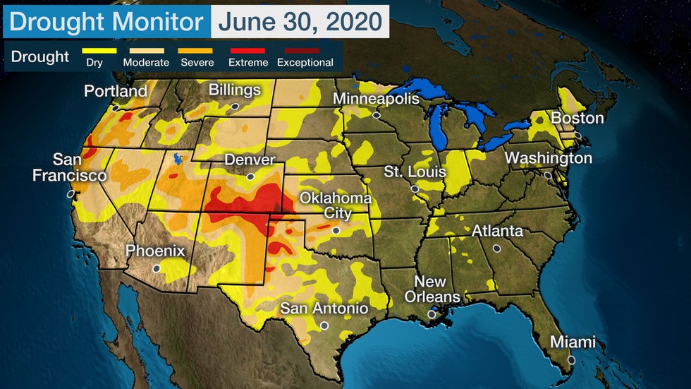 Across the nation, worries about spreading COVID-19 have led to hundreds of Independence Day fireworks celebrations being canceled. For those that will go on, especially in the Plains and the West, officials are dealing with another concern: drought and dry conditions.