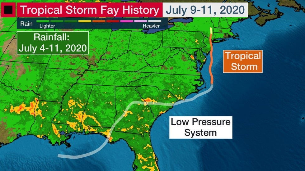 But it was Fay's track northward into New Jersey and the New York City Tri-state area that was most strange for July.