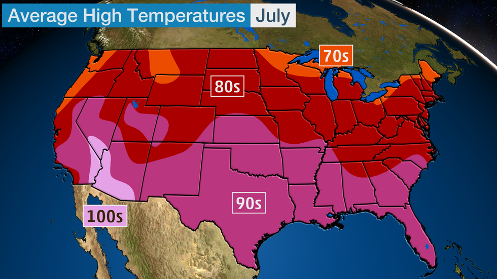 July is the warmest month of the year across much of the country.
