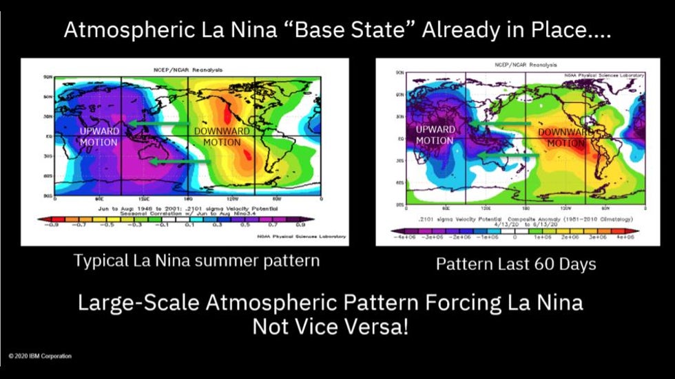 Typically, the ocean cools, then the atmosphere responds to the cooling, but this year, the opposite is occurring. In fact, the atmosphere is already acting like a La Niña is occurring, and Crawford expects to see those atmospheric effects continue.
