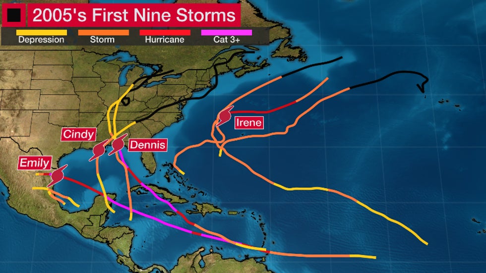 Four hurricanes were among the first nine named storms of the 2005 season.