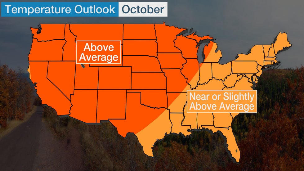 The East and South, however, are expected to experience temperatures near average or slightly warmer for October.