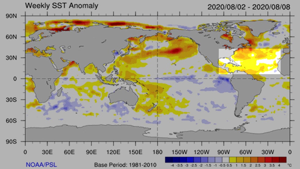 Atlantic Basin ocean temperatures typically max out in September or early October after months of heating from the summer sun.