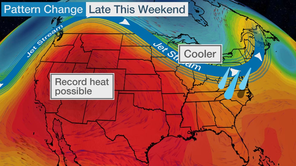 A pattern shift will develop this weekend resulting in record heat in parts of the West and mild and wet conditions dominating parts of the central and eastern United States.