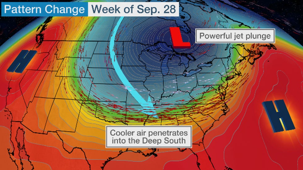 A much chillier weather pattern will plunge into the Midwest, East and South next week, bringing with it the potential for frost and freeze conditions as the calendar turns to October.