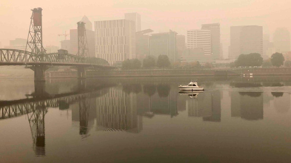 A view of downtown Portland from the East Bank Esplanade is seen on Monday, Sept. 14, 2020.Officials advised residents to stay inside with the windows and doors closed.