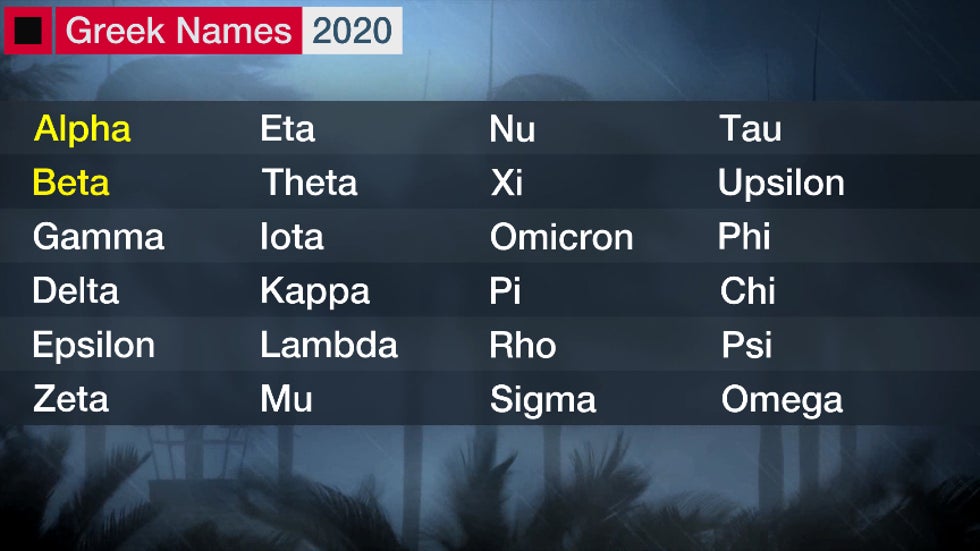This year's exceptional pace of named storms has already crossed off Alpha and Beta from the secondary list of Greek alphabet names. 2005 is the only other year when the naming of tropical storms and hurricanes had to dip into this backup list; There were six storms that received Greek alphabet names that year.