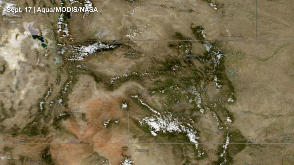 In the Rockies, this foliage is covered by snow and cloud cover and snow will soon become far more frequent.