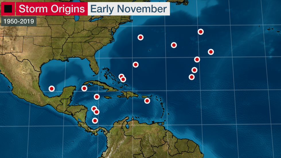 We should expect one named storm every other November, and one November hurricane roughly every three years. Of course, some years are more active than this while others are quieter.