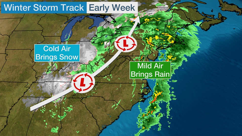 That's because the general track of significant winter storms has been northeastward across the central United States. This storm track draws milder air into the Northeast, resulting in more rain than snow.