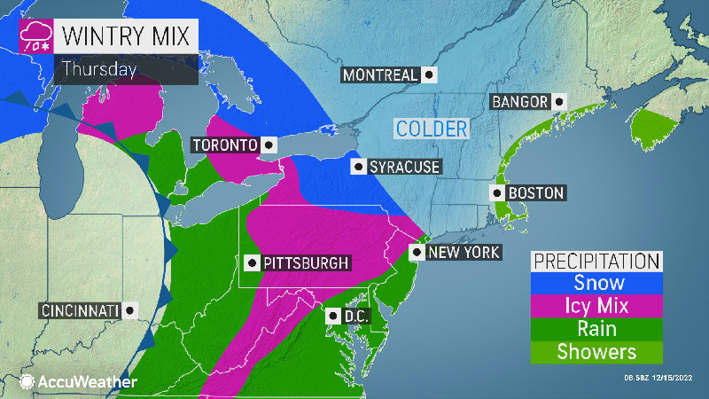 It’s a complex setup for the storm in the Northeast on Thursday, with rain, freezing rain, sleet and accumulating snow threatening to cause travel nightmares. AccuWeather Long-Range Meteorologist Joe Lundberg and AccuWeather Chief On-Air Meteorologist Bernie Rayno discussed some of the ongoing threats from the storm on the AccuWeather Network earlier Thursday as well as how it will develop into the evening hours. Lundberg noted that the storm could evolve into more of a “classic nor’easter for New England.” Watch the video below for more.