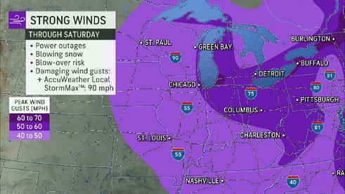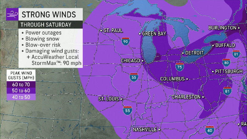 AccuWeather meteorologist Dean DeVore warns of high winds leading to a deep freeze event to follow after the snow in the north-central and northeastern United States.