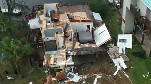 Drone video from storm chaser Brian Emfinger shows homes destroyed by Hurricane Idalia on Aug. 30, at Keaton Beach, Florida. Theirs was one of many homes that sustained heavy damage in the region.